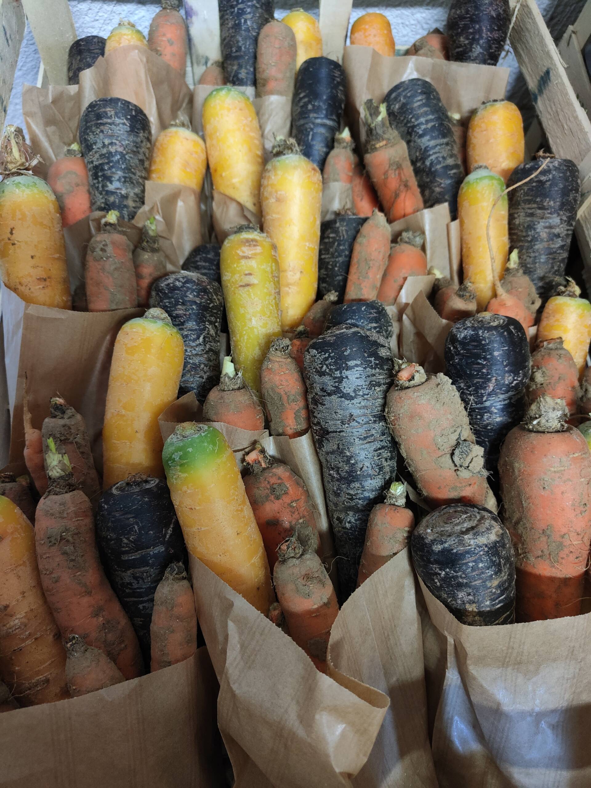 AccueilLégumesCarottes colorées Carottes colorées2.50€ Provenance: France (Provence) Quantité: 600-700g quantité de Carottes colorées Acheter Catégorie : Légumes Étiquettes : gourmand, légumes, local, panier Product ID: 18740 Produits similaires Cebettes 2.00€ Acheter Champignons (Bruns selon arrivage) 500G 4.00€ Acheter Oeufs Plein Air (cat 1) 2.50€ Acheter Panier Mixte Familial 34.00€ Acheter